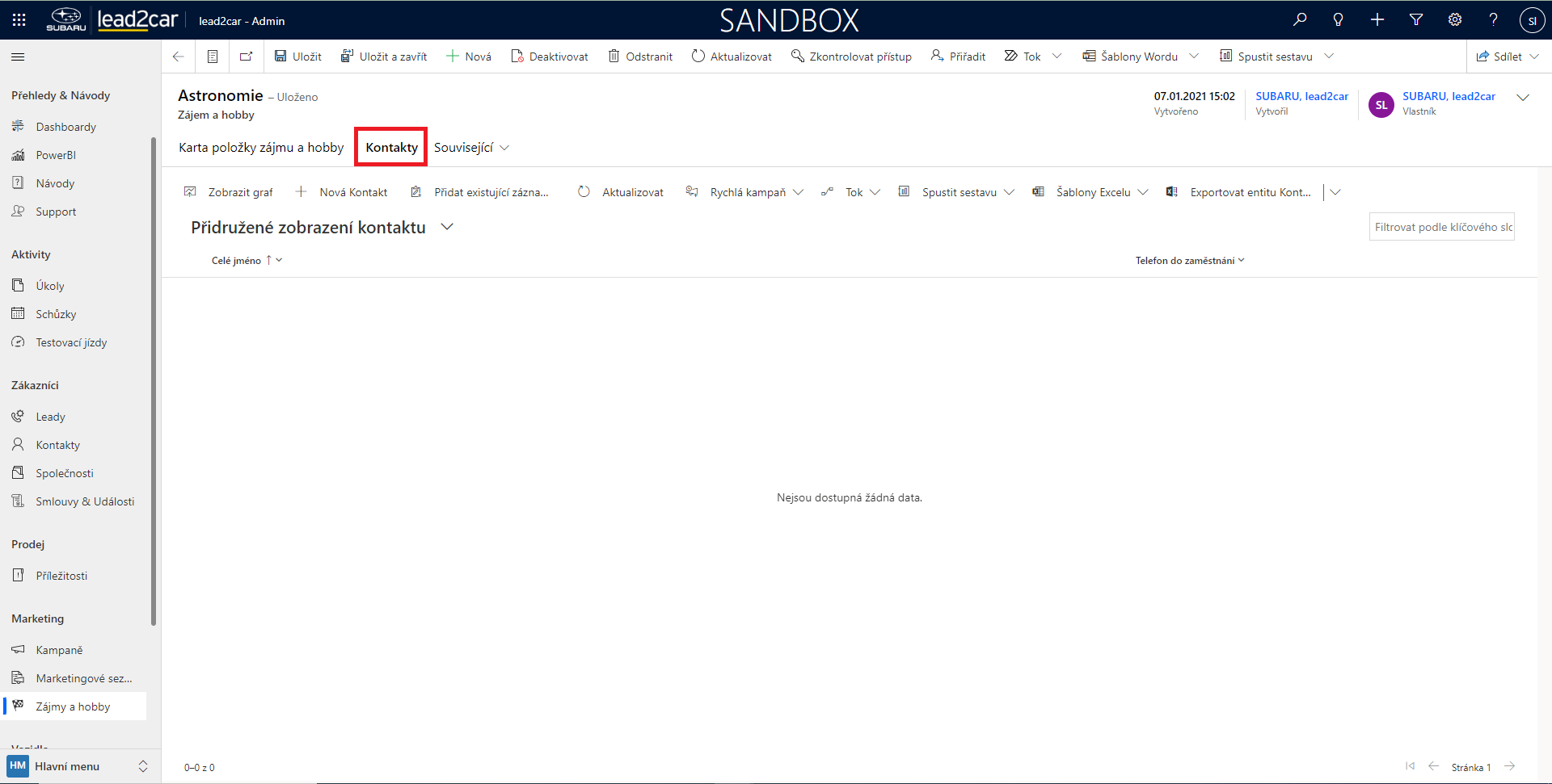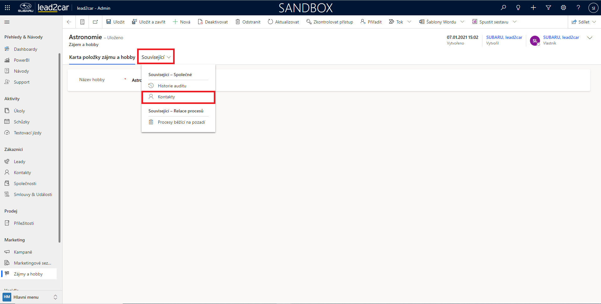 U stávajícího zájmu si můžeme ještě otevřít možnost související, ve které se nacházejí například údaje o kontaktech se stejným zájmem.