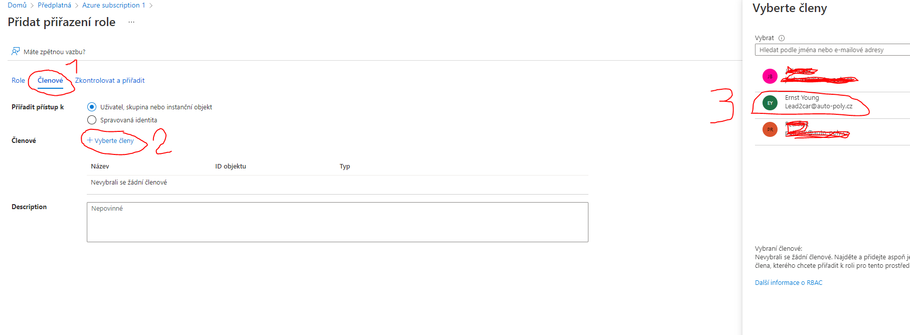 Následně zde vyberte možnost ,,členové" z horního panelu. Poté kliknětte na ,,+vyberte členy". Objeví se vám panel v pravé části obrazovky, kde můžete zvolit které členy chcete přidat.
