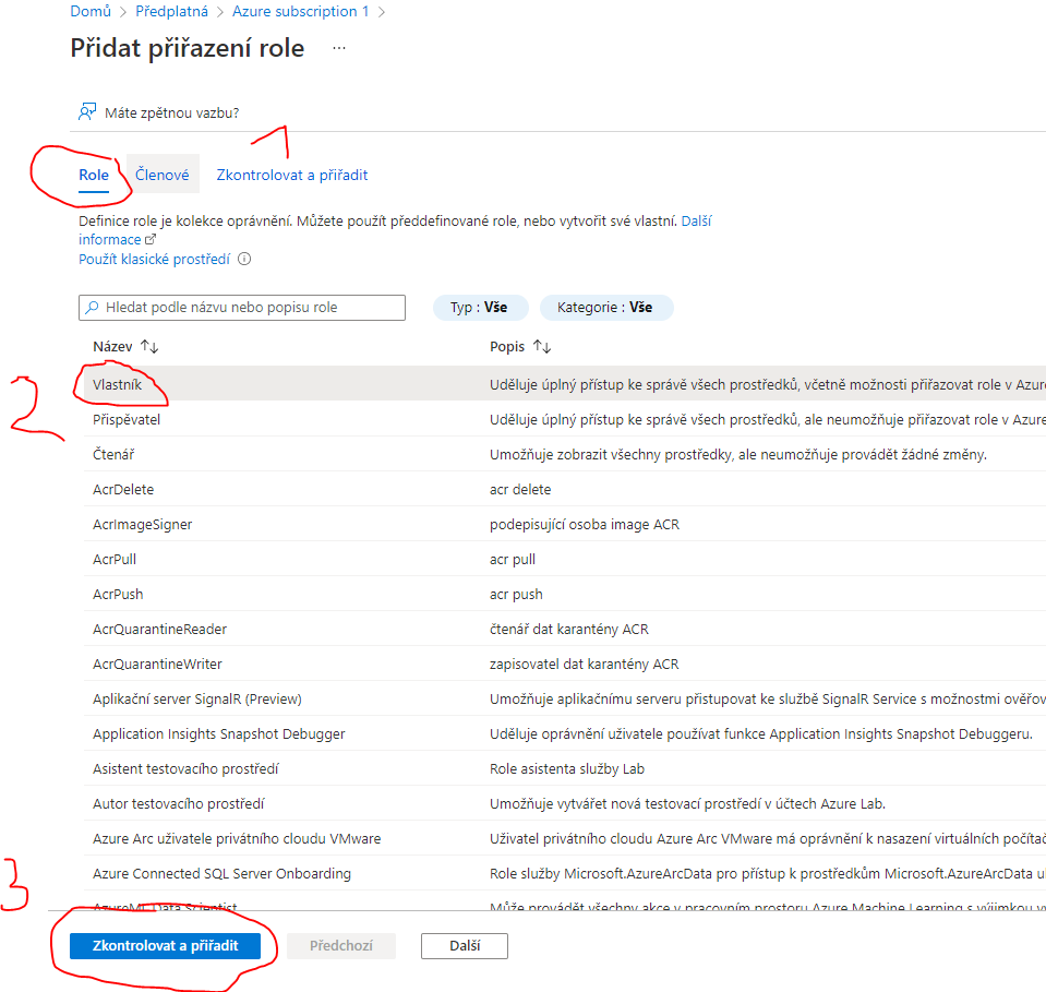 Nakonec musíte danému uživateli vybrat roli vlastník. Takže v horním menu zvolte ,,role". Vyberte možnost ,,vlastník", a jednoduše potvrďte zmáčknutím tlačítka ,,Zkontrolovat a přiřadit".