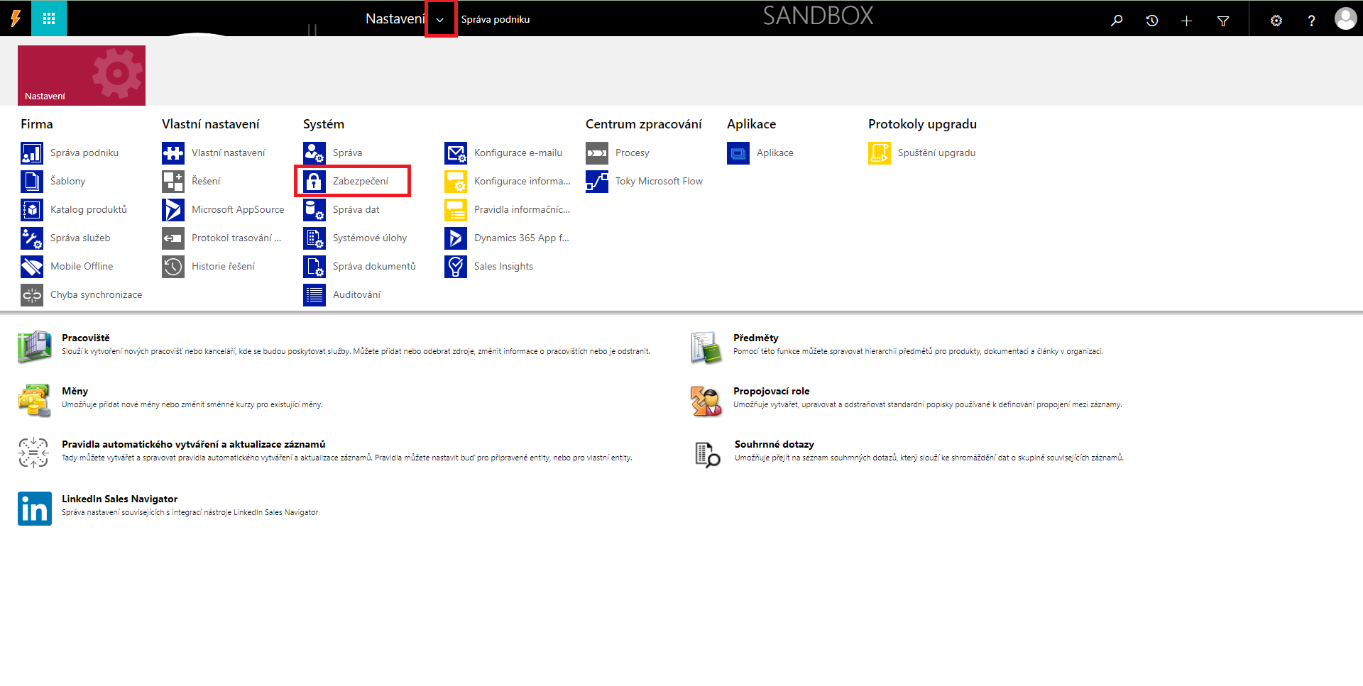 Následně klikněte na ikonku napravo od nastavení, která se nachází na horní liště, a vyberte možnost ,,Zabezpečení".