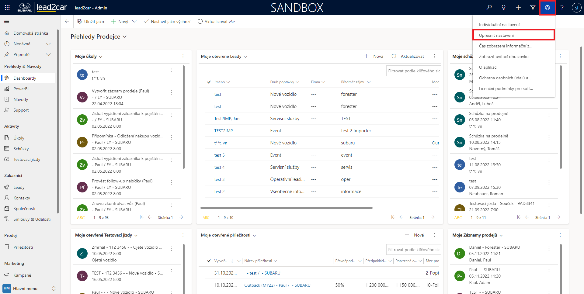 Zde vytvoříte nového uživatele lead2car. Uživateli později přiřaďte licence na:
