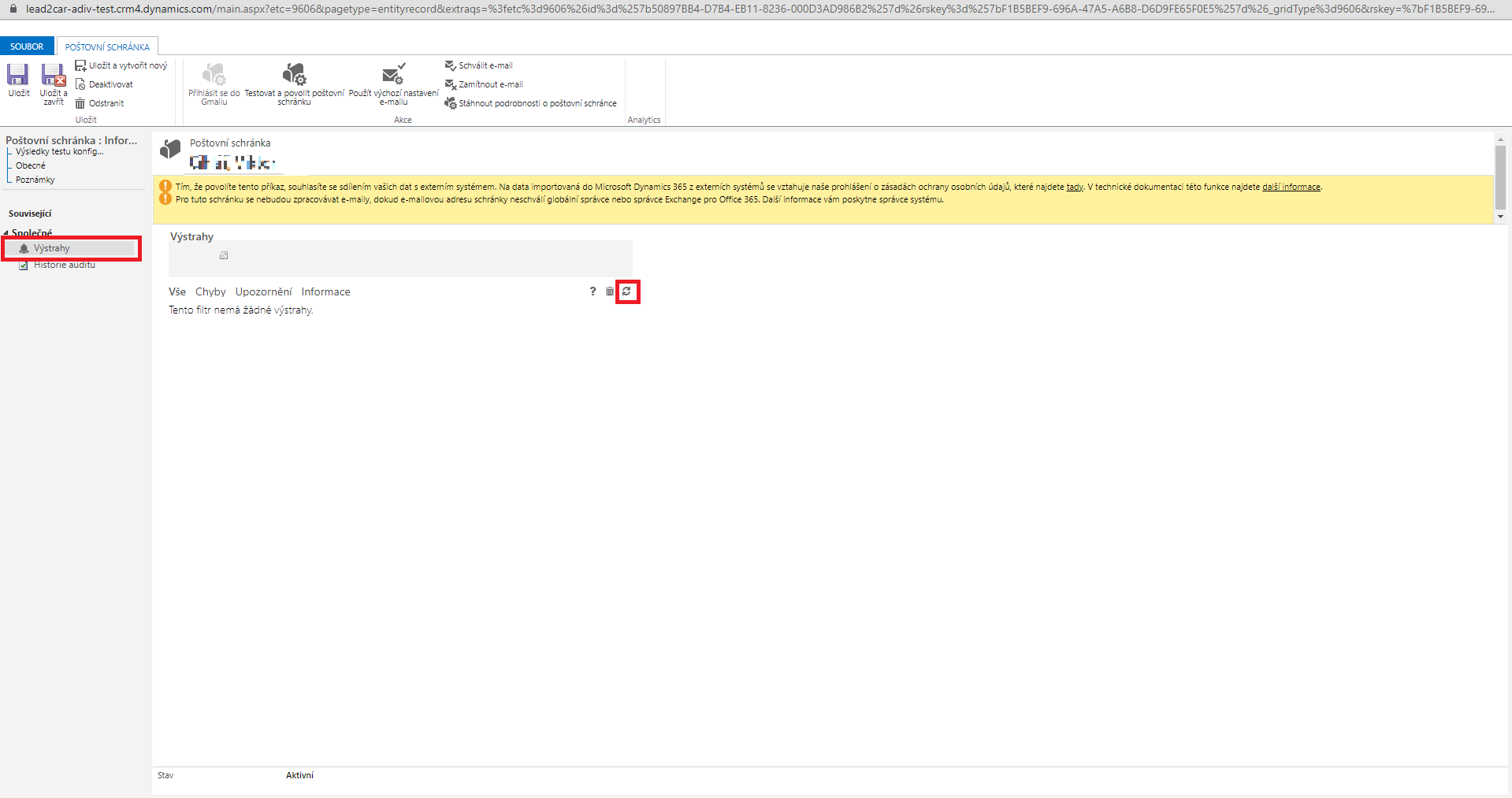 Pro ověření vyberte v levém menu možnost ,,výstrahy". Měli by vám zde po chvíli vyskakovat upozornění pro připojeného člověka. Pokud se nic neobjevilo, zkuste obnovit stránku pomocí kolečka se šipkami. Měli by se vám zde objevit zprávy o příchozí a odchozí poště.