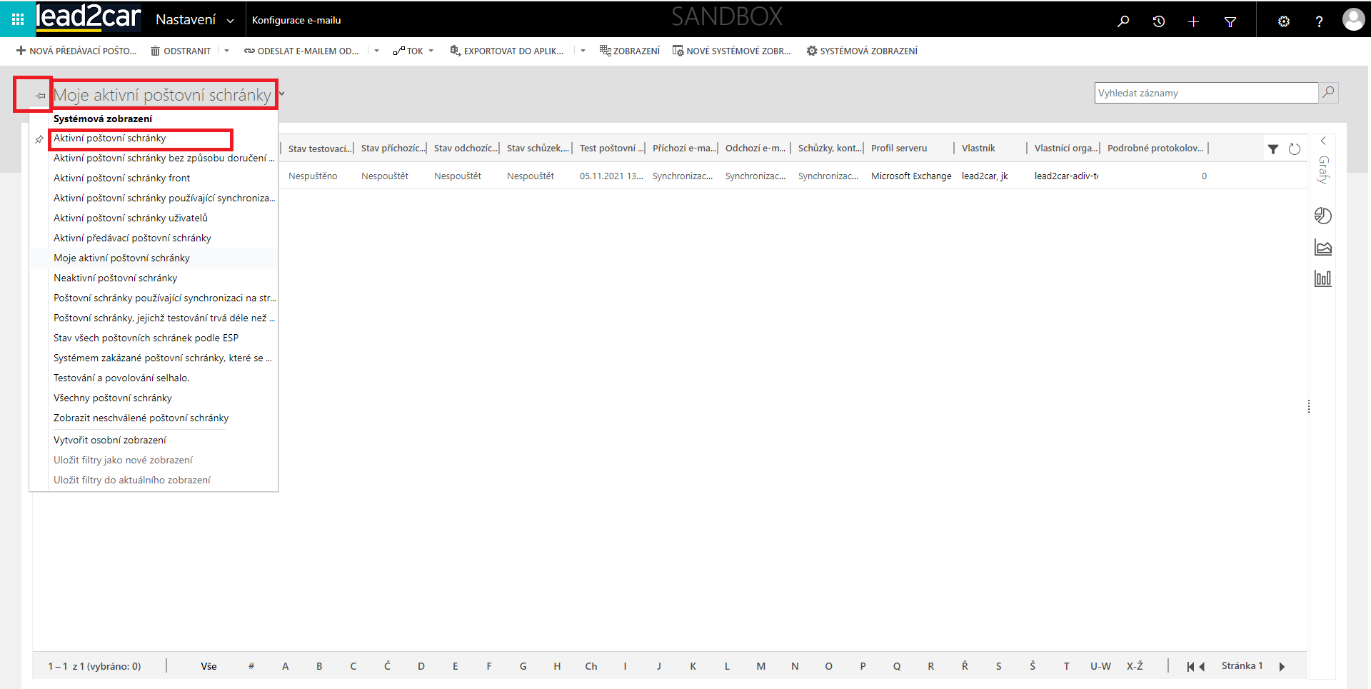 Otevře se vám nové okno. Zde vlevo nahoře klikněte na ,,Moje aktivní poštovní schránky". Z nabídky možností zvolte ,,Aktivní poštovní schránky", a stiskněte špendlík, který je nalevo od toho. Díky tomu se vám Aktivní poštovní schránky uloží jako primární nastavení.