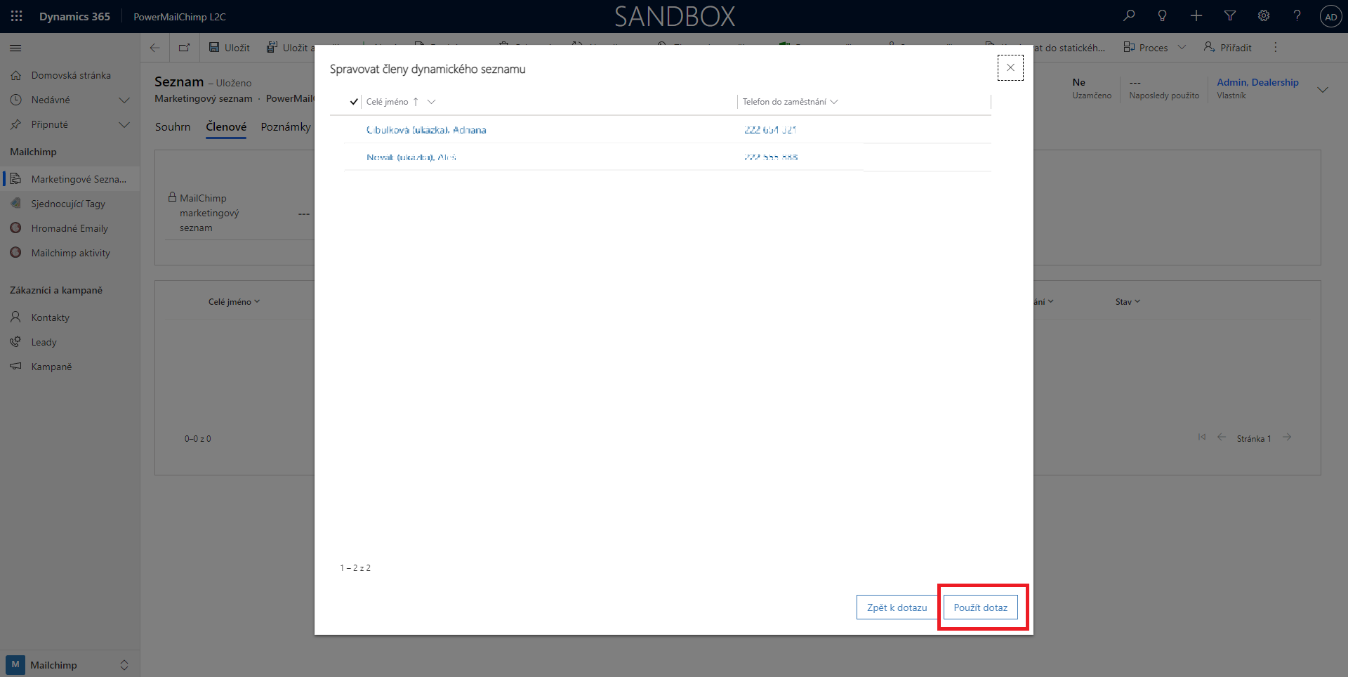 Můžete seznam zkontrolovat a pokud je správně vytvořen, stiskněte tlačítko ,,Použít dotaz“.