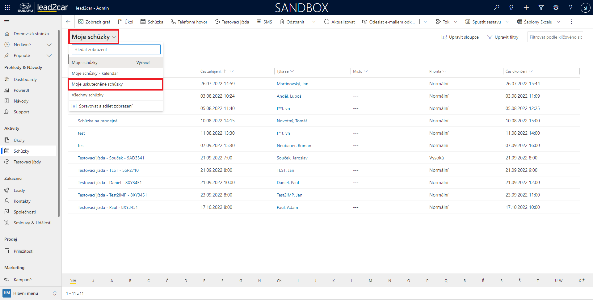 Schůzky je možné v lead2car vytvářet buď předem, tedy jedná se o schůzku plánovanou, případně je možné vytvořit schůzku i zpětně. Například, pokud na prodejnu přijde zákazník, lze tuto návštěvu zaevidovat jako schůzku. Pro vytvoření schůzky nejdříve z levého menu vyberte možnost „Schůzky“. Následně pro vytvoření nové schůzky vyberte z horního panelu možnost „Schůzka“.
