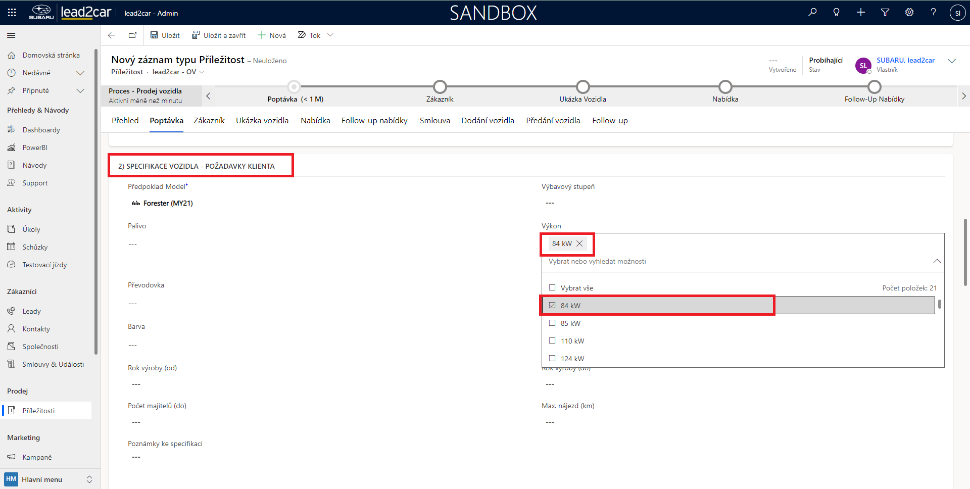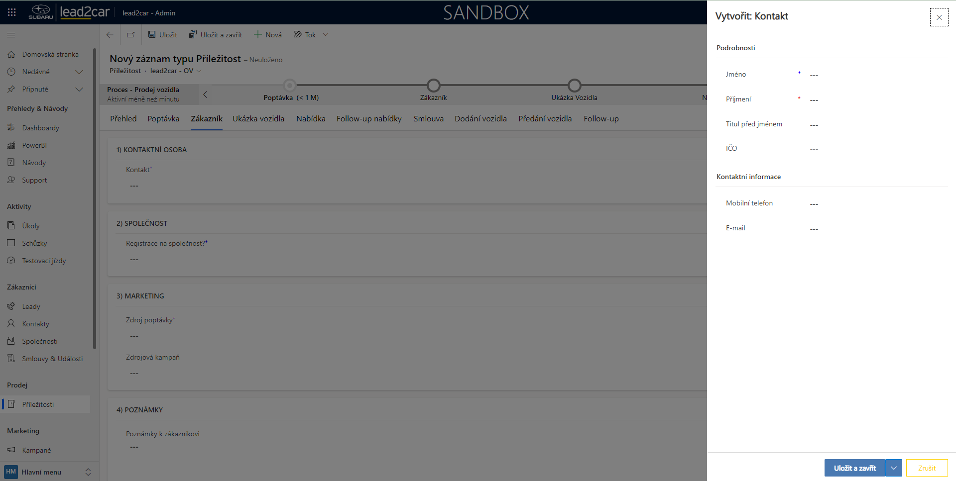 Entita "Příležitost" slouží k ulehčení sledování prodejního procesu. Zde lze evidovat a sledovat průběh prodejní příležitosti od úplného začátku, tedy od první informace o zájmu zákazníka o vozidlo, přes proces výběru konkrétního vozidla, až po jeho odevzdání. Na konci je možné zaznamenat spokojenost zákazníka s celým procesem, případně mu nabídnout další služby.