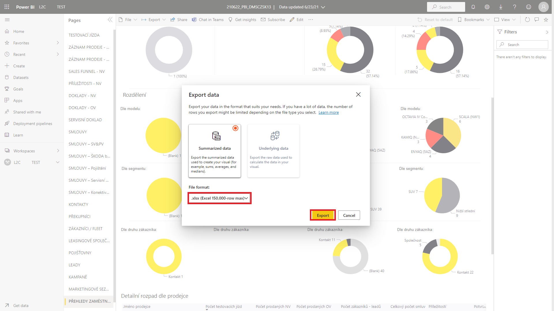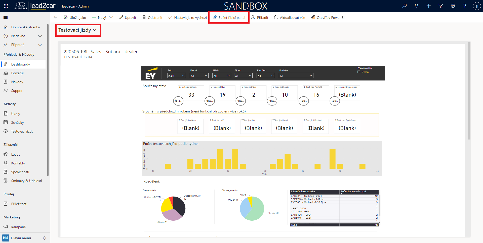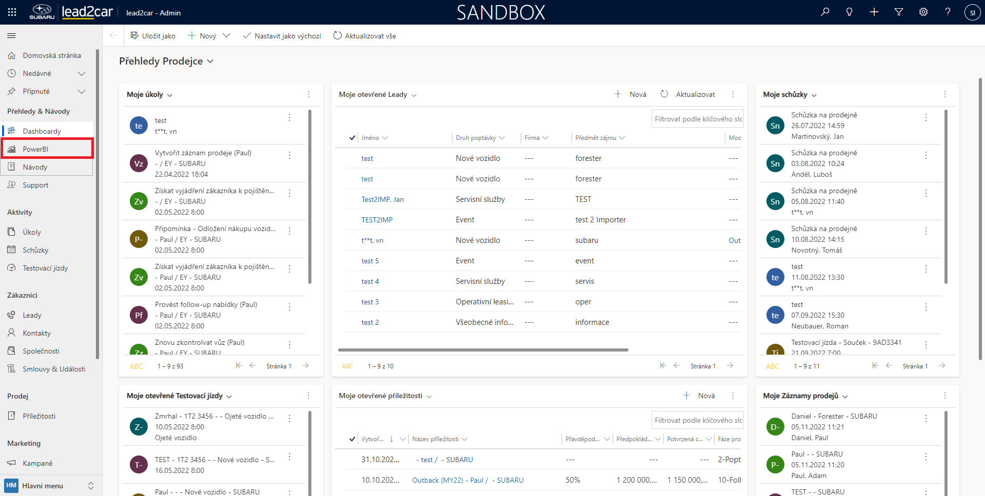 PowerBI je engine, který umožňuje zobrazovat dashboardy v samotném lead2car. Je to nezávislá služba a jednotliví uživatelé musí mít licenci PowerBI Pro. Exportovat můžete například hodnoty z grafů nebo tabulky.