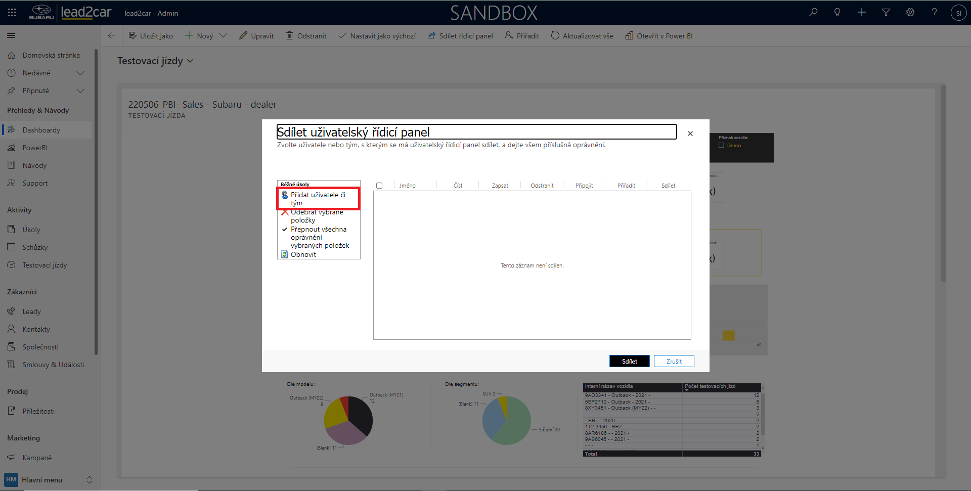 Sdílení reportů je téměř totožné s přidáváním uživatelů. Klíčový rozdíl zde je, že na konci chcete dané osobě dát pouze práva na čtení, a žádná jiná. Díky tomu Dashboardy uvidí, ale nebude moci s nimi jakkoli pracovat.