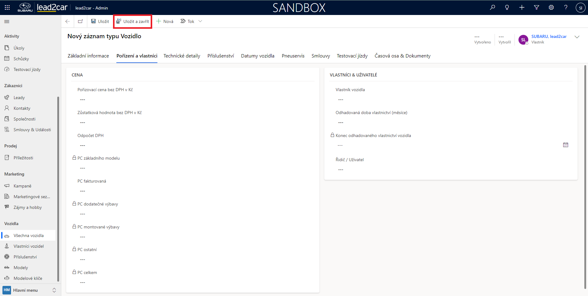 Důležité je vyplnit také ostatní pole – Pořízení a vlastníci, Technické detaily, Finance a provoz a další…